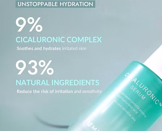 Es un serum calmante e hidratante altamente concentrado con un refrescante efecto cooling. Posee el exclusivo Cicaluronic Complex de MIZON, una fórmula vegana con 7 tipos de centella asiática y 8 tipos de ácido hialurónico que calmarán e hidratarán cada capa de tu piel, al mismo tiempo que mantienen su humedad natural por más tiempo. Ideal para todo tipo de pieles, incluso las más sensibles.