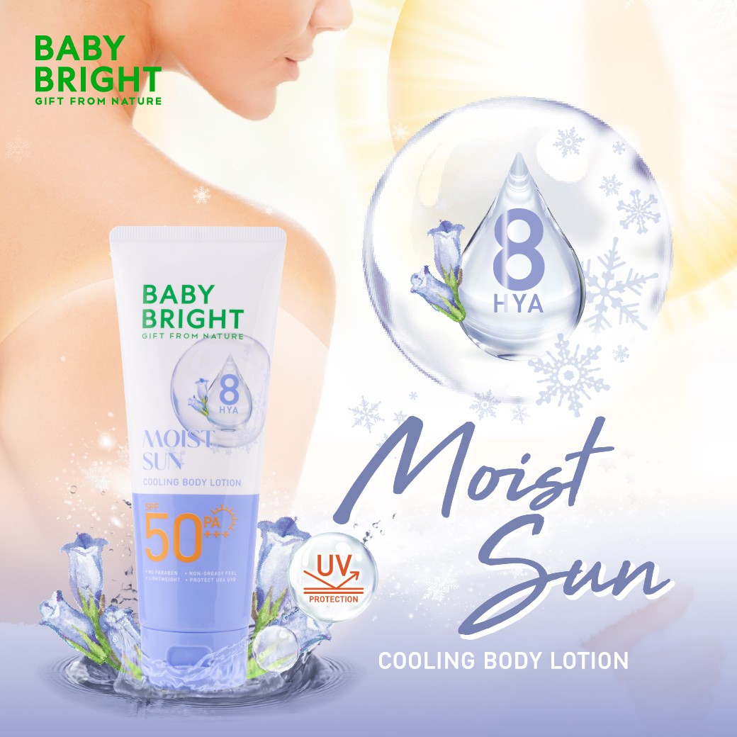Loción corporal refrescante Baby Bright White Sun con FPS 50 PA+++. De rápida absorción y no grasosa protege tu piel hasta 50 veces más de los rayos UVA y UVB.
