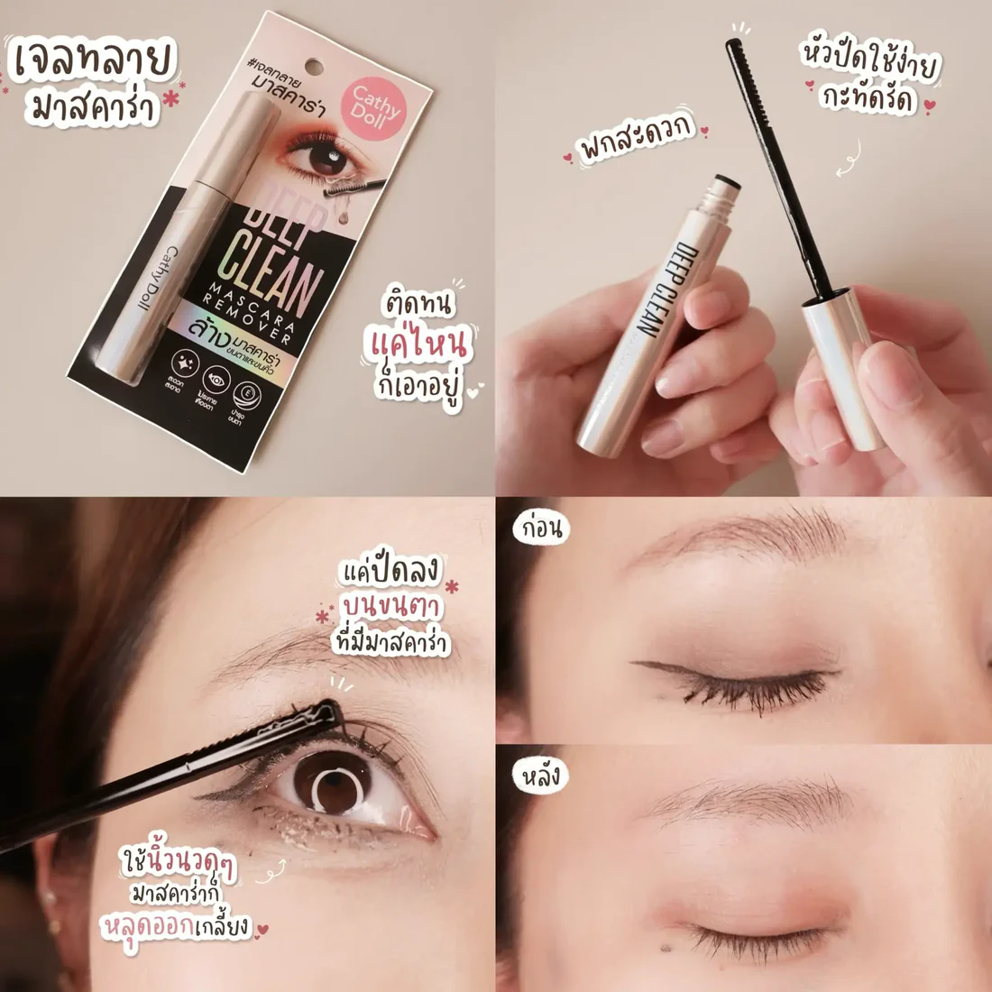 Su suave fórmula en gel no irrita y está enriquecida con vitamina E, que ayuda a fortalecer e hidratar las pestañas y las cejas, mientras elimina el maquillaje.