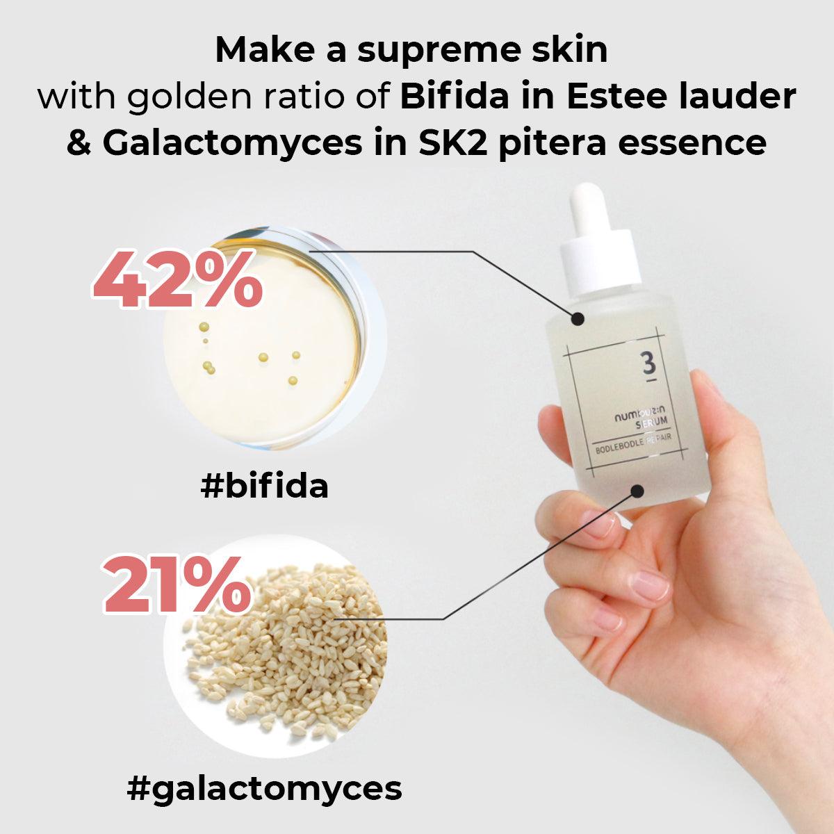 – Bifida Ferment Lysate(42%): fortalece la barrera cutánea y protege frente a agresores externos, mejorando la elasticidad.